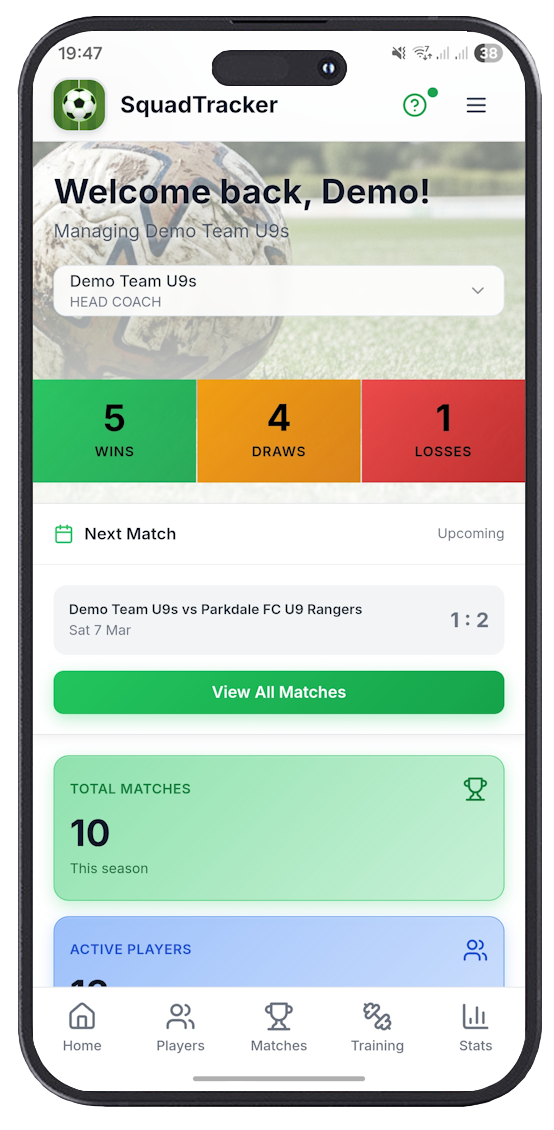 SquadTracker was created by a grassroots football coach who was tired of spreadsheets, group chats, and forgetting the teamsheet. Every feature exists because a real coach needed it.